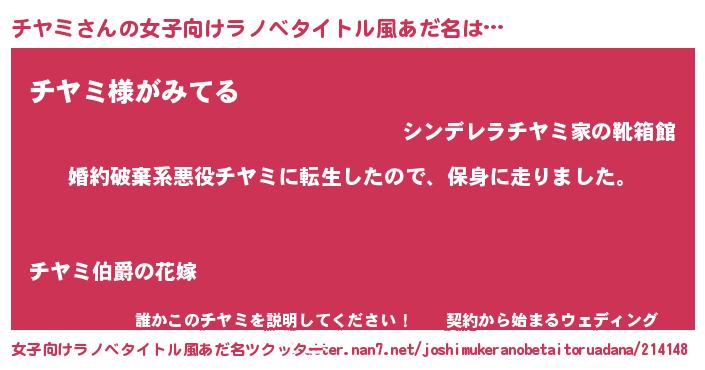 | 男性向けラノベタイトル風あだ名 | 『チヤミスレイヤー』 |