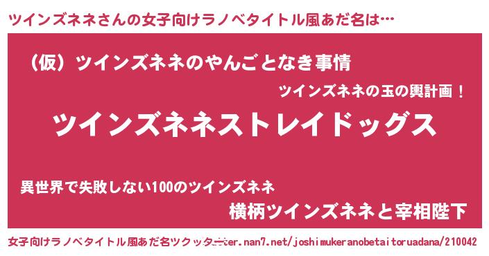 | ヒーロー風カッコイイあだ名 | 『最強戦士ツインズネネ』『天弓騎士ツイ』 |