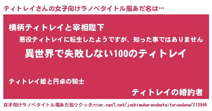 | 意味不明あだ名 | 『永久保存ティトレイ』『自称ティトレイ』 |