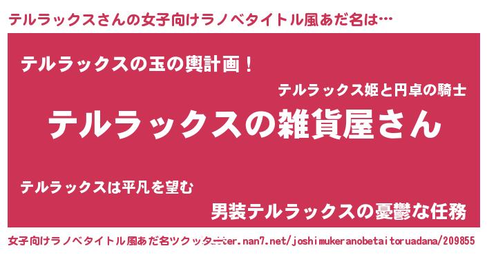 | 男性向けラノベタイトル風あだ名 | 『やはりテルラックスの青春ラブコメはまちがっている 』 |