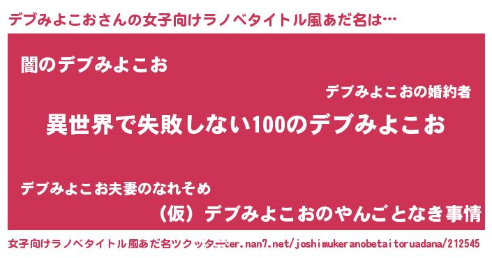 | 男性向けラノベタイトル風あだ名 | 『デブみよこおという概念が存在しない退屈な世界 』 |