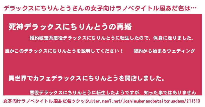 | 男性向けラノベタイトル風あだ名 | 『デラックスニチリントウアートオンライン』 |