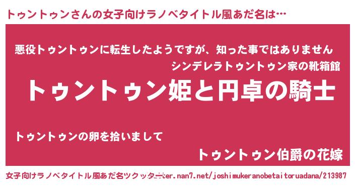 | 胡散臭い通販商品みたいなあだ名 | 『モテモテ間違いなしブレスレット…その名も「トゥントゥン」』 |