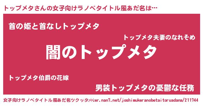 | 意味不明あだ名 | 『自称トップメタ』『永久保存トップメタ』 |