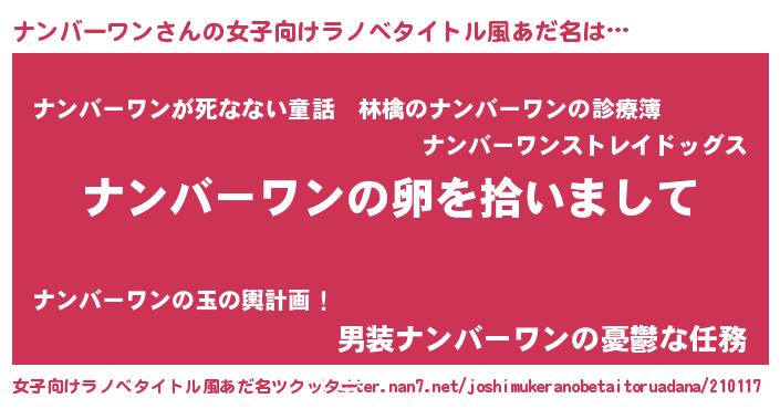 | 男性向けラノベタイトル風あだ名 | 『ナンバーワンの嫁は女の子じゃないと思った?』 |