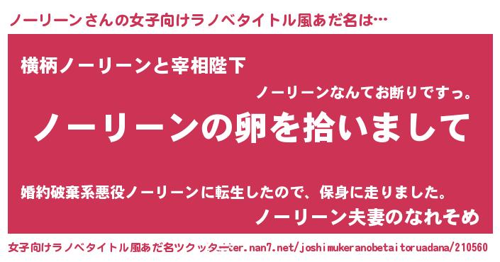 | 男性向けラノベタイトル風あだ名 | 『ダンジョンにノーリーンを求めるのは間違っているだろうか』 |