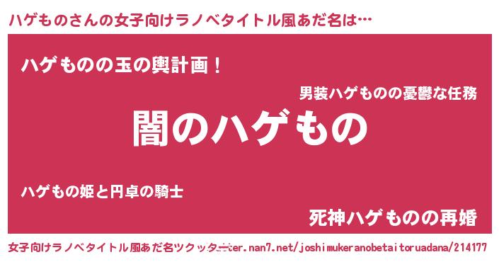 | ヒーロー風カッコイイあだ名 | 『最強戦士ハゲモノ』『スーパーハゲモノ』 |