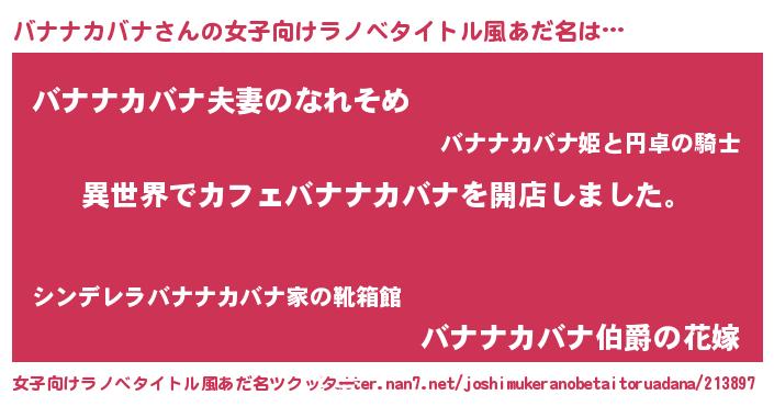 | 男性向けラノベタイトル風あだ名 | 『誰もが恐れるあのバナナカバナが、ぼくの専属メイドになるようです。』 |