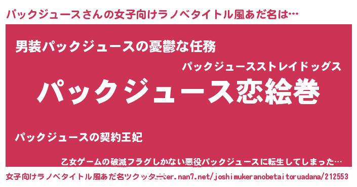 | 男性向けラノベタイトル風あだ名 | 『ノーゲーム・ノーパックジュース』 |