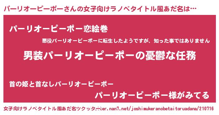 | 料理風あだ名 | 『パーリオーピーポーの炊き込みご飯』 |