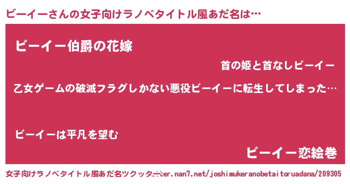| 意味不明あだ名 | 『住所不定無職ビーイー(81歳)』 |