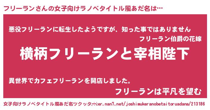 | 男性向けラノベタイトル風あだ名 | 『フリーランに滅ぼされるだけの簡単なお仕事です』 |