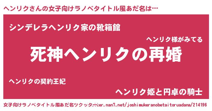 | 男性向けラノベタイトル風あだ名 | 『ノーゲーム・ノーヘンリク』 |
