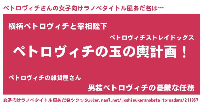 | 男性向けラノベタイトル風あだ名 | 『転生したらペトロヴィチだった件』 |
