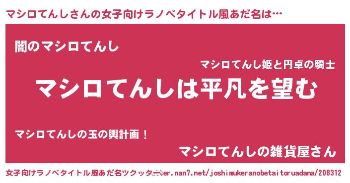 | 男性向けラノベタイトル風あだ名 | 『ダンジョンにマシロてんしを求めるのは間違っているだろうか』 |