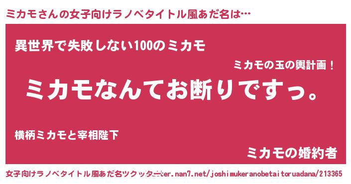 | 意味不明あだ名 | 『自称ミカモ』『永久保存ミカモ』 |