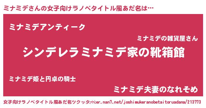 | ヘコむあだ名 | 『豆乳』『ミナふぇ~』『ミナを』 |