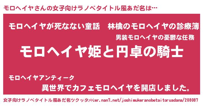| 意味不明あだ名 | 『ペロリンモロヘイヤ』『自称モロヘイヤ』 |