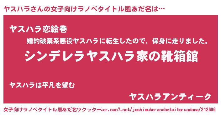 | ピコ太郎風あだ名 | 『ヤヤ太郎』『ヤス五郎』『ヤコ太郎』 |