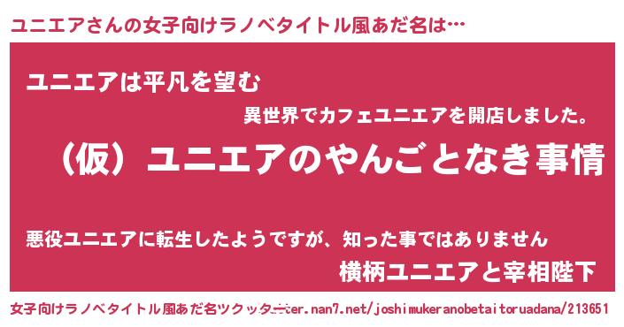| 男性向けラノベタイトル風あだ名 | 『ユニエアの憂鬱』 |