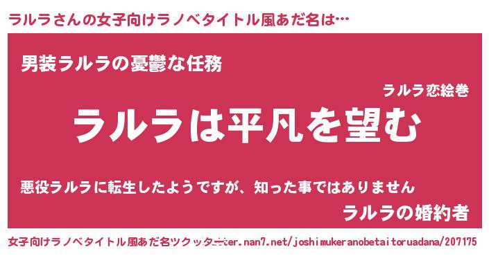 男性向けラノベタイトル風あだ名 | 『ダンジョンにラルラを求めるのは間違っているだろうか』 |