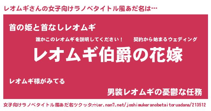 | 男性向けラノベタイトル風あだ名 | 『やはりレオムギの青春ラブコメはまちがっている 』 |