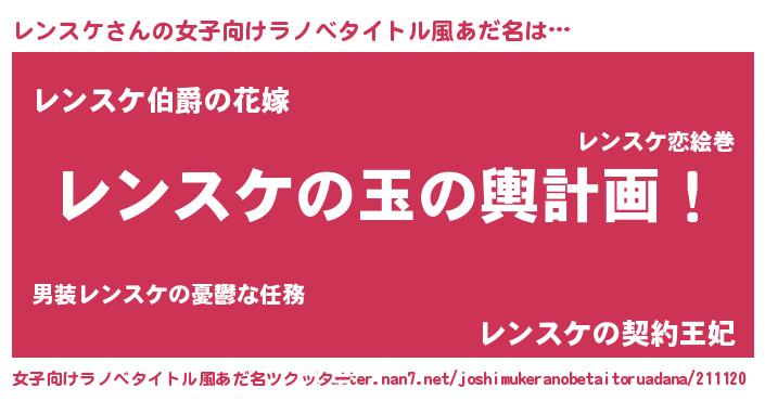| 男性向けラノベタイトル風あだ名 | 『転生したらレンスケだった件』 |