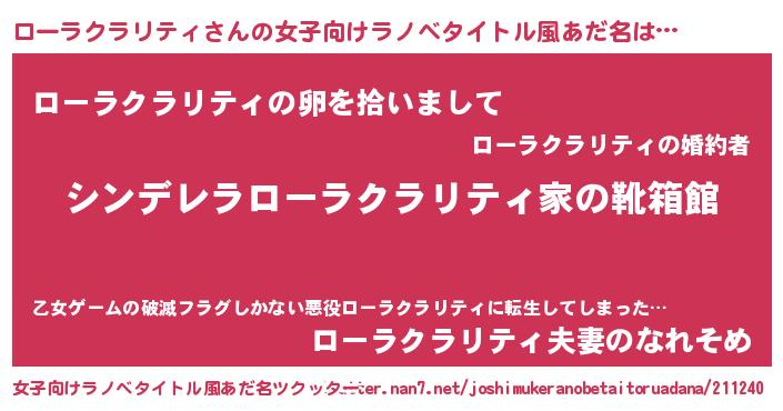 | 男性向けラノベタイトル風あだ名 | 『緋弾のローラクラリティ』 |