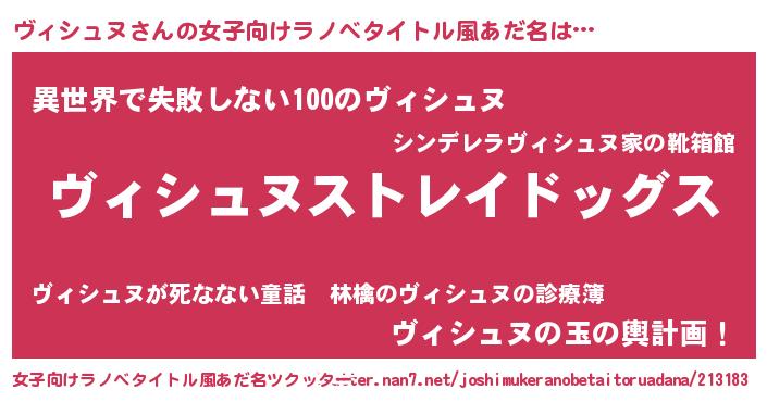 | 意味不明あだ名 | 『自称ヴィシュヌ』『永久保存ヴィシュヌ』 |