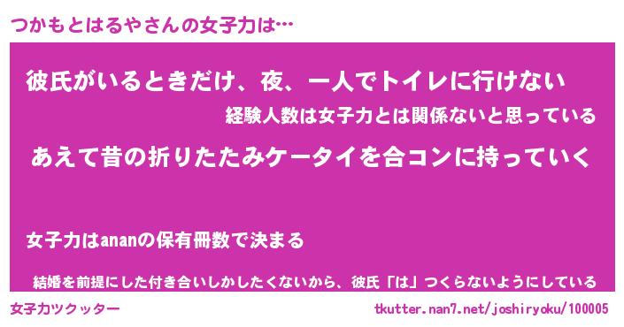 | ヘコむあだ名 | 『つかにー』『牛乳』『つかっちょ』 |
