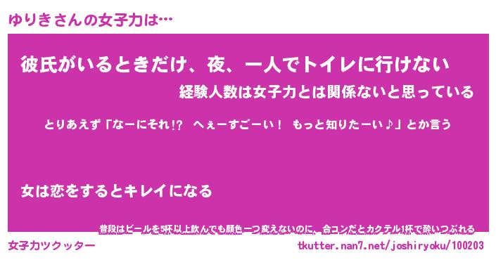 | 意味不明あだ名 | 『ペロリンゆりき』『ゆりきフォーエバー』 |