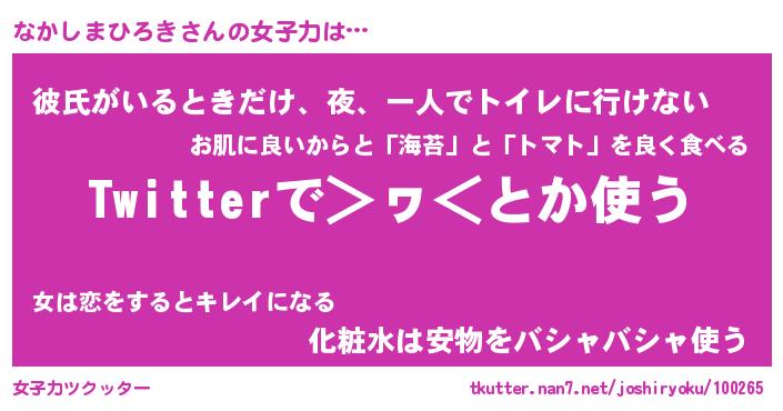 | ヘコむあだ名 | 『なかにー』『豆乳』『なかっちょ』 |