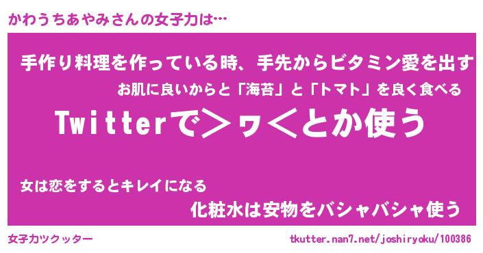 | 肩書あだ名 | 『かわうちあやみ社長』 |