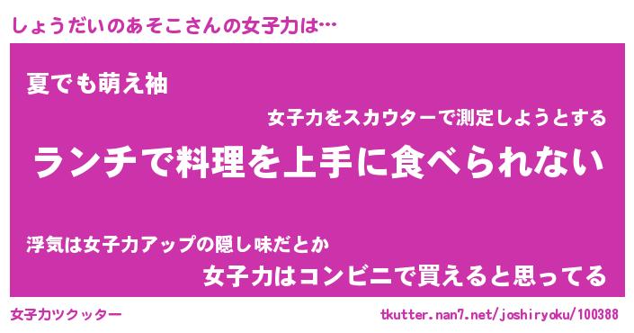 | ヘコむあだ名 | 『しょっふぃ~』『なまこ酢』 |
