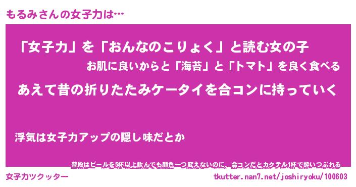 | 胡散臭い通販商品みたいなあだ名 | 『必ず成功するブレスレット…その名も「もるみ」』 |