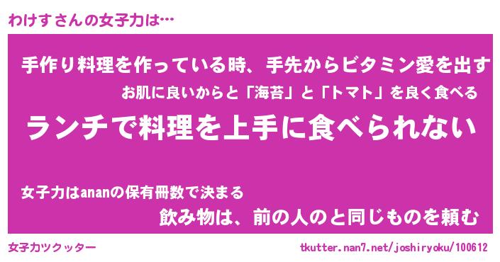 | ヘコむあだ名 | 『わけっふぃ~』『酢こんぶ』 |