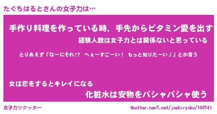 | ヘコむあだ名 | 『たぐもー』『つくし』『たぐを』 |
