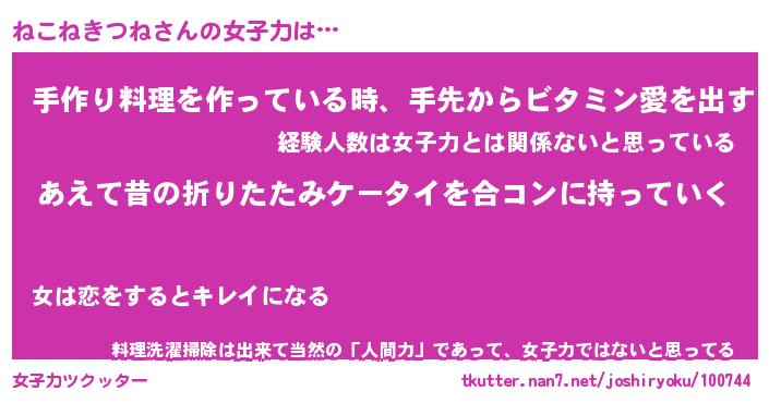 | ヘコむあだ名 | 『ねこふぇ~』『つくし』『ねこっぺ』 |