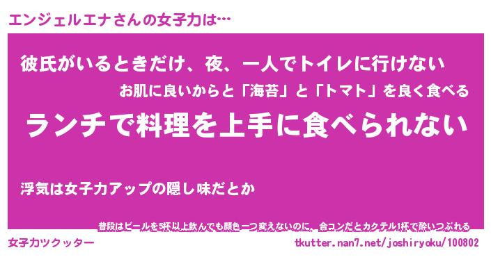 | 恥ずかしいあだ名 | 『プリティーエンジェルエナ』『エンちん』 |