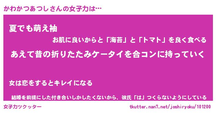 | 女子向けラノベタイトル風あだ名 | 『(仮)かわかつあつしのやんごとなき事情』 |