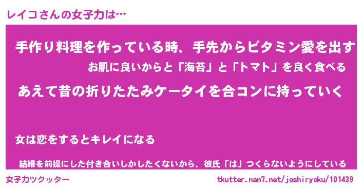 | ヘコむあだ名 | 『レイにゅー』『つくし』『レイっぺ』 |