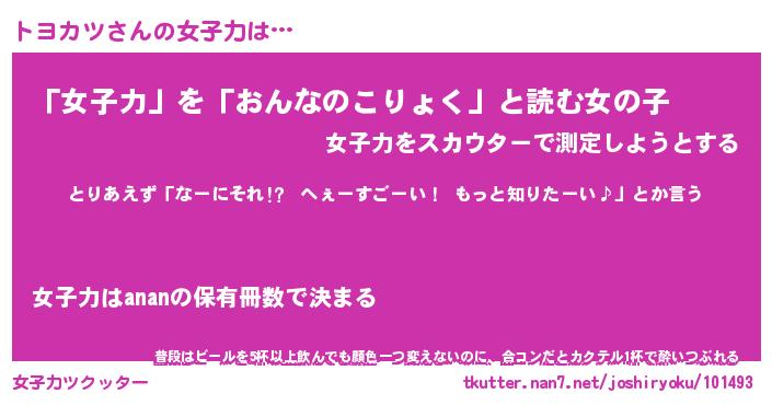 | ファンタジー風あだ名 | 『トヨフェル』『エターナルトヨカツー』 |