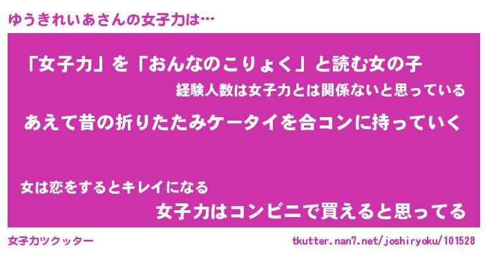 | 女子向けラノベタイトル風あだ名 | 『(仮)ゆうきれいあのやんごとなき事情』 |