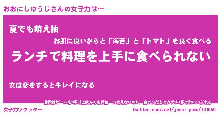 | 恥ずかしいあだ名 | 『プリティーおおにしゆうじ』『おおちん』 |