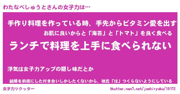 | ポケモン風あだ名 | 『ワタチュウ』『ワタナダネ』 |
