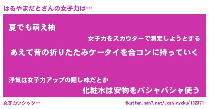 | ヘコむあだ名 | 『はるっふぃ~』『なまこ酢』 |