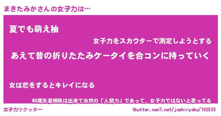 | 恥ずかしいあだ名 | 『プリティーまきたみか』『まきっちょ』 |