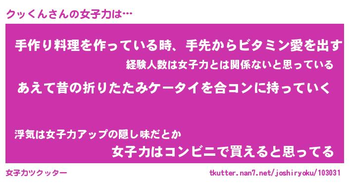 | ヘコむあだ名 | 『クッにー』『つくし』『クッっ子』 |