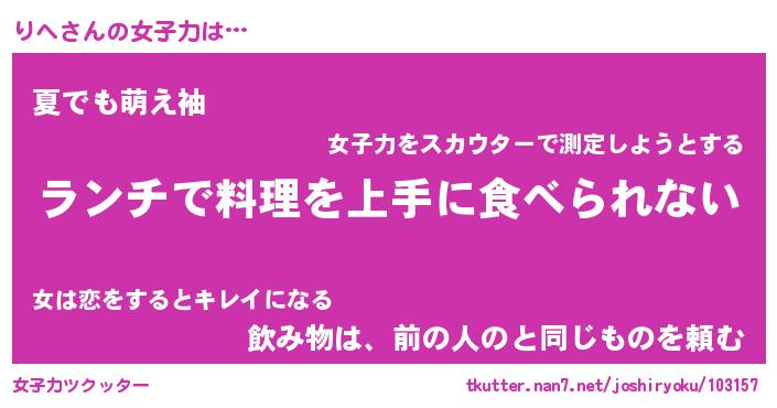 | ヘコむあだ名 | 『りへにー』『なまこ酢』『りへ太郎』 |