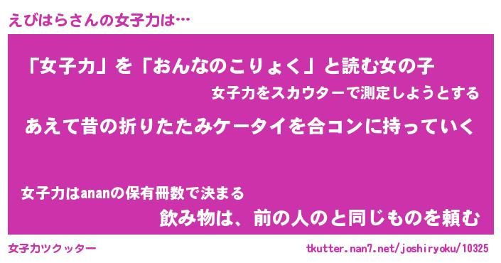 | ヘコむあだ名 | 『えびっふぃ~』『酢こんぶ』 |